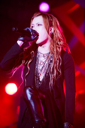 とジョークを飛ばしたキリトは「雨の中、こんなに集まってくれて、みなさんが愛おしくて仕方ない。これからも全力で応えていきます」と宣言。TAKEOは「みんな、気持ちよくなってますよね」と笑い、KOHTAも「僕は汗かきなので水分補給です」と笑顔。ギルは「みんなの声がすごく聞こえてきて、助かってます。行けるか!?」と煽り、Karyuは「個人的にこんなに雨に降られながらライブをやるのは初めてです。でも、燃えるよね」とテンション高めだった。「PROGRAM」ではゴールドとシルバーのテープが会場に降り注ぎ、ラストは「PLOSIVE」。