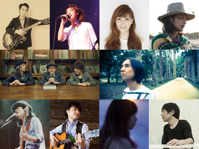 ▲写真左上より:ORIGINAL LOVE(アコースティックセット)/BONNIE PINK/土岐麻子/Caravan/高橋幸宏 with 佐橋佳幸、堀江博久/高野寛/Curly Giraffe/高田漣/青葉市子/小山田圭吾。