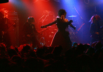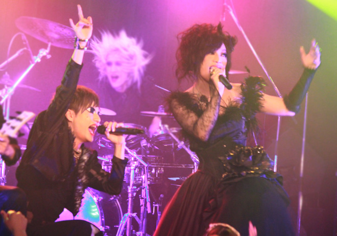 Kayaの台詞により始まる「Luftschloss」は、3拍子に心惹かれる壮大なバラード。続く「BABEL」は弾むピアノのメロディから始まり、Kayaの引き裂くようなシャウトにフロアは自然と頭を振り乱し、全力で折りたたむ。手紙を読む、という演出から始まったのは「Crimson Nail」。途中、感情的に手紙を破り捨てるシーンでは、泣き崩れてみたり、高笑いしてみたりと、一つの舞台を見ているかのような世界観。感情を剥き出しにするステージ、フロアにも、どんどん目が奪われていく。