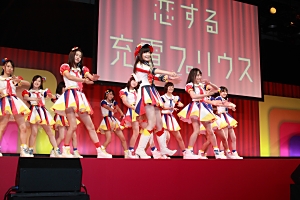 お披露目会では、CMの為に制作された公式の替え歌「恋する充電プリウス ~恋するフォーチュンクッキー2~」を初披露。こちらは今後ご当地バージョンとして全国各地の方言を取り入れた6バージョンのミュージックビデオも公開される予定だそう。その後のトークコーナーでは、指原がチーム8のメンバーを優しくリードしながら、イベントに参加したメンバー15人を次々と紹介。鳥取県出身の中野郁海が、「Tシャツと短パン以外の衣装は初めてです。すごく可愛くて、こんなの着てCM出ていいのかな」と嬉しい気持ちを語ると、指原は「ご飯食べるときは気を付けてる?小嶋陽菜さんというメンバーはいっつも汚して怒られてるから気をつけてね。」と延べ、会場の笑いを誘った。