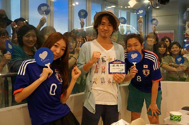 6月18日(水)にはコカ・コーラ 2014 ワールドカップ キャンペーンアンセム「The World is ours!」をリリースするナオト・インティライミ。この日の放送でファンの歓声に包まれて登場した彼は、開幕直前のワールドカップに「ほんとに始まるんですよね」と、そのテンションの高さでリスナーのワクワク感を煽り「ヨーロッパで活躍している選手たちも、一番年齢的に油の乗っている時期。ここでイカないで、いつイクの!?という感じ」と日本代表への期待を寄せた。