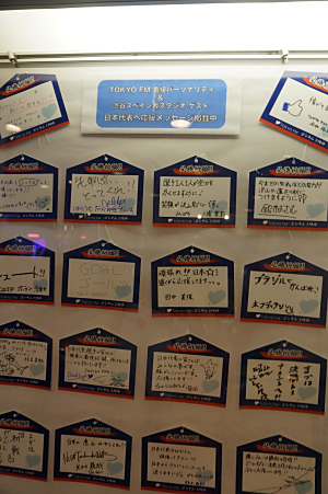 TOKYO FMでは、この渋谷スペイン坂スタジオにて日本代表必勝祈願の絵馬コーナーを設置し、観覧リスナーや出演者からのメッセージを展示している。展示スペースにはナオト・インティライミによる『一緒に戦います!!~そしてベスト8へ~』という直筆メッセージも加わった。これらのメッセージは、日本代表が勝ち進む限り展示されるとのこと。