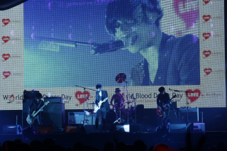 続いて登場したのは、数多くの音楽フェスに登場し、高い人気を誇るロックバンド[Alexandros]。ステージに登場する4人の姿に、観客からは大きな歓声が沸く。ライブでは[Alexandros]らしいダイナミックな演奏スタイルに合わせて、川上洋平(Vo、G)の持つハイトーンボイスに観客は総立ち。「Starrrrrrr」や「Adventure」を熱唱し、“献血は、思いが繋がっている。ラブレターみたいな感じかな”と観客に向けて、献血への協力を訴えた。