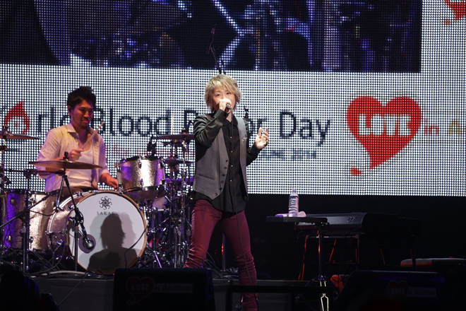 ライブの最後に登場したAquaTimezは、1曲目からアップテンポな曲で、客席もヒートアップ。続いて、メロディアスな音色に乗せて“歌っていることで昨日よりも強くなれている気がしないか”と観客に語り掛け、観客もその言葉にじっと耳を傾けていた。また“(献血は)自分のことを好きになるためのもの”と自身の思いを会場に伝える。ラストは真っ赤なバルーンが会場を埋め尽くす演出の中、「虹」を披露し日本武道館を熱気に包んで本日のライブを締めくくった。