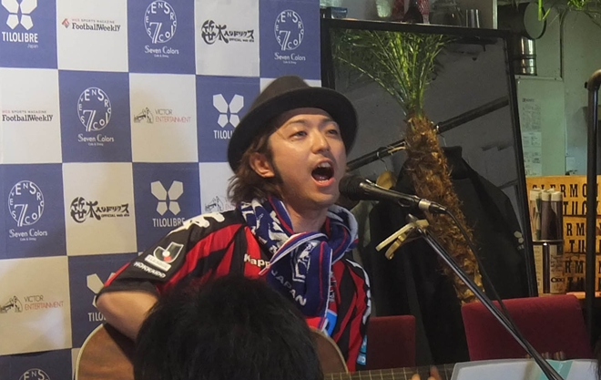 笹木ヘンドリクスが6月16日、東京・下北沢のカフェ「SevenColors」にて行われたイベント<W杯を見たい!聞きたい!歌いたい!feat.笹木ヘンドリクス&FootballWeekly>に出演。6月11日にリリースしたばかりのデビューシングル「星のかけら」を熱唱した。