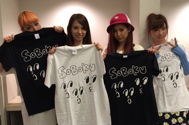 Tシャツデザインはメンバー手描きによるもの。『SCANDALのSCANOMICS』人気コーナー“SOBOKUな疑問!リクエスト”にちなんでメンバーが描いたデザインをよく見ると、イラストの口のカタチが「ソ」「ボ」「ク」と言っているような。