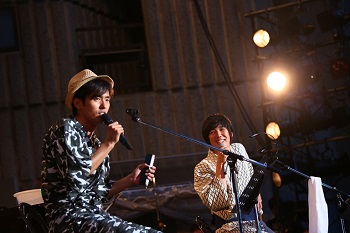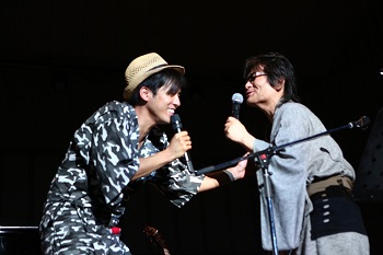 「夏が近くなるとロックアーティストはみんな外でライブをやり始めるのに、僕みたいなバラードアーティストは外に出てはいけないみたいな感じ。そんな世の中の流れを変えたかった」と、MCで今回のライブ開催の経緯を語ったK。ライブ中盤からは夏フェスの形式にならって、Kとプライベートでも親交のあるアーティスト達がゲストとして登場。まず1人目のゲストとして登場したのは、プライベートで飲み仲間だというスキマスイッチの大橋卓弥。飲みには行くものの、2人だけで歌うのは初めてということで貴重なライブとなったこの日は、Kのニューアルバムから「NOTE」と、エヴァリーブラザーズの「Crying In The Rain」を、アコースティックアレンジで歌いあげた。
