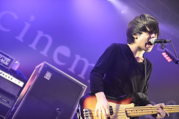 ステージバックにバンドロゴを携え現れたcinema staffは、挨拶代わりにニューアルバムから「dawnrider」を演奏。「我々は、岐阜県からきましたcinema staffというバンドです。今日もよろしく!」と三島想平(Ba)によるおなじみの挨拶を皮切りに、「sea said」はじめ、「borka」「shiranai hito」などニューアルバムからアッパーな楽曲を立て続けに披露し、一気に会場を熱くさせた。
