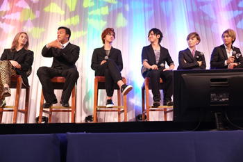 続いては、そんなGACKTに憧れるメンバーが本人を目の前にアメトーーク!ならぬ<ガクトーーク>を披露。ここでは、いつも身近にいるメンバーしか知り得ないリアルGACKTの姿を次々と暴露。面白かったのは、普段コンビニに行かないGACKTをTAKUMIが無理矢理連れて行ったときの話。最初は「コンビニって食べ物ないね」といっていたGACKT。だが、じっくりと店内を巡ったあとは「コンビニってテーマパークみたい」とコンビニの評価が一転。最後には「コンビニ、便利だ」と喜びながら、雑誌20冊を買って帰ったそう。