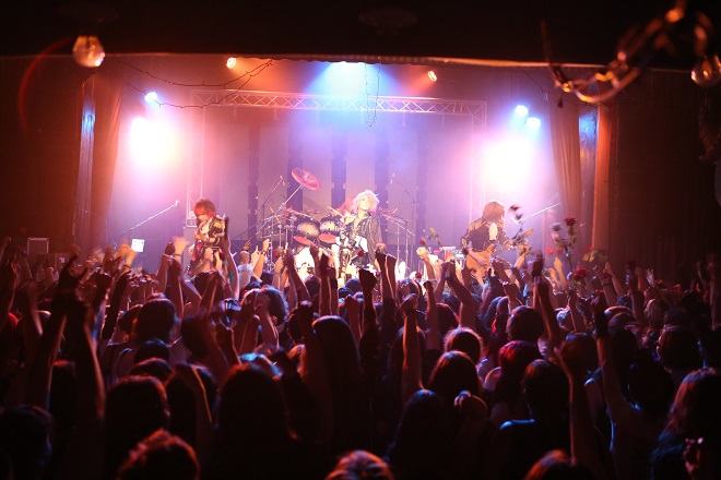 最新シングル「Moulin Rouge」をはじめ、3月にリリースされた長編交響曲「Symphony of The Vampire」など、このライブでは全17曲が披露された。ラストナンバーとなったソロ第1弾シングル「Louis ~艶血のラヴィアンローズ~」では大合唱が巻き起こり、熱狂のうちに初ライブの幕を閉じた。