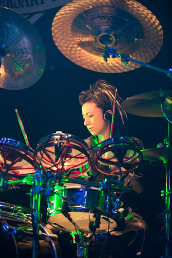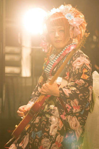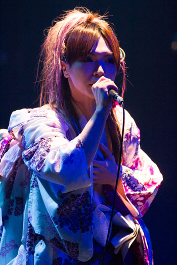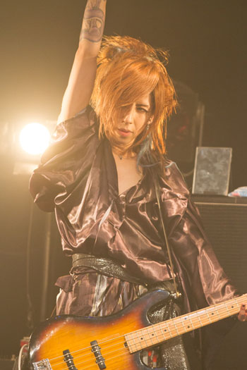 もちろん「妄想接吻」のような、観客たちと一緒に両手でハートを作りながらはしゃいでゆくロマンティックなポップ・チューンや、会場中の人たちが思いきり手を振り上げ“YES NO、YES NO”と唄い続けたデジタル系ダンスナンバー「YES≒NO」など、親しみあふれた明るく開放的な楽曲も組み込んでいた。「妄想接吻」ではギターの華遊がキスを求めてきたことから、ヴォーカルのみつが頬に軽くChu!と口づける、女性の妄想意識を思いきり掻き立ててゆく場面が登場していたこともお伝えしておこう。