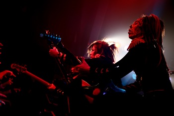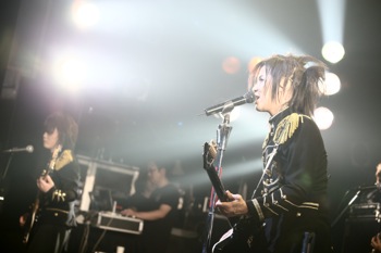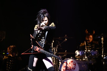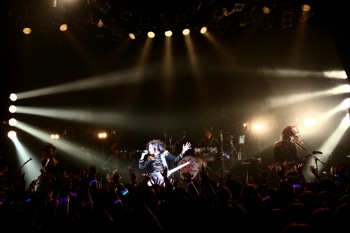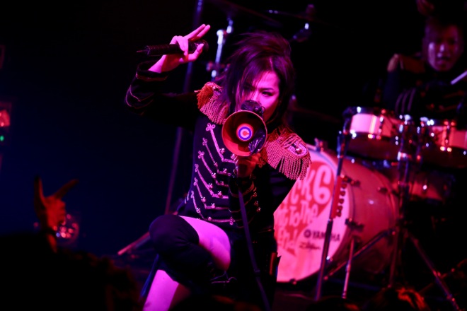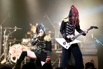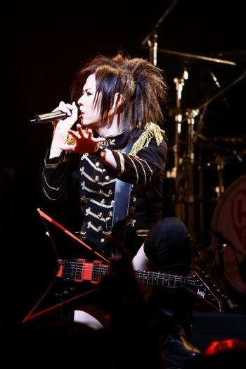 最新アルバム『Crazy Monsters Parade』1曲目のイントロダクションがSEで流れる中、メンバー全員アルバムジャケットの衣装で登場した。オープニングは燃え盛る情念を歌った激しくも切ないナンバー「Violet Eyes」だ。ハンドマイクでパフォーマンスしながら歌うMSTRこと千聖は、間奏になるといきなり超絶な速弾きを披露し、場内のテンションを上げていく。MSTRがヴィヴィッドな存在感を放っているのは言うまでもないが、全員がソングライターでもあるメンバーも実に濃いキャラクターが揃っている。