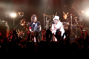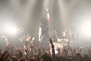 そして、アンコールではサプライズゲストが。前日の7月5日には新宿BLAZEで恒例のCrack6主宰イベント<Crazy Monsters>が行なわれたのだが、「約1名、出演者代表として全てを背負って、あの白い妖精! あの宇宙人がやってきました!」という呼び込みで、MICRO HEAD 4N’SのボーカリストRickyが真っ白な衣装で登場。大歓声の中、音源でも競演した「Crazy Monsters」をMSTRとのツインボーカルで披露した。