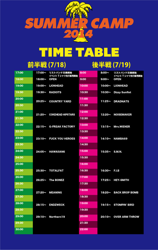 ロックイベント<SUMMER CAMP 2014>のタイムテーブルが発表