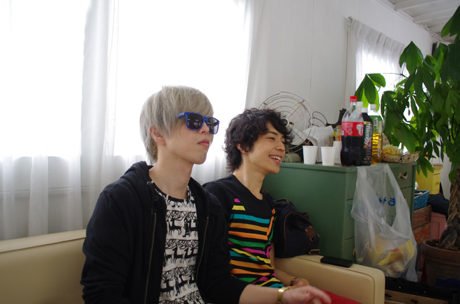 撮影場所に到着し、衣装に着替えるササキジュンとアベノブユキ。