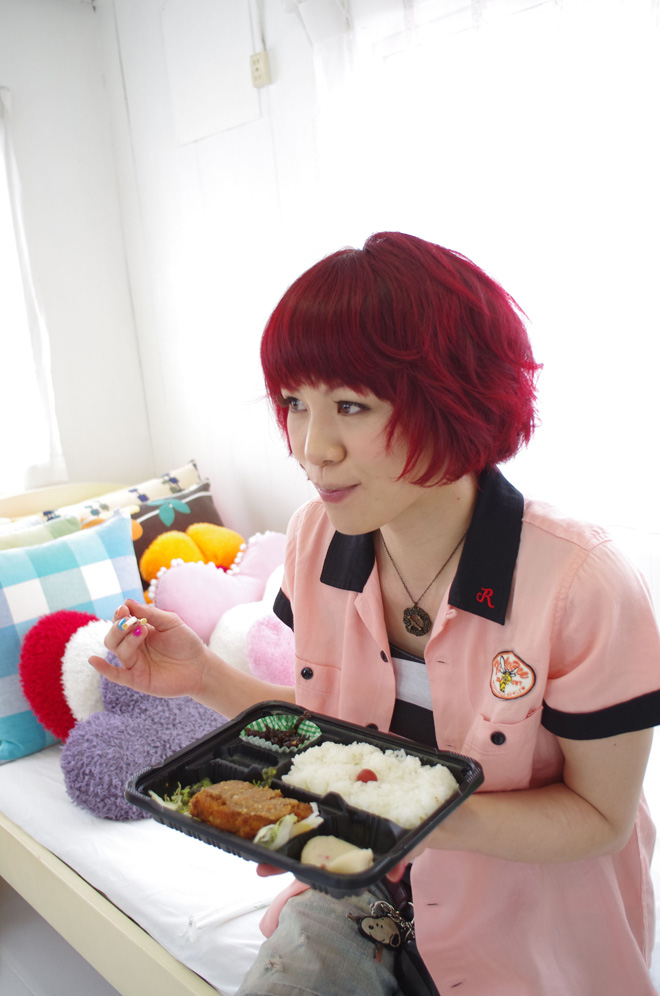 衣装にこぼしてしまわないように気を付けながら食べています。