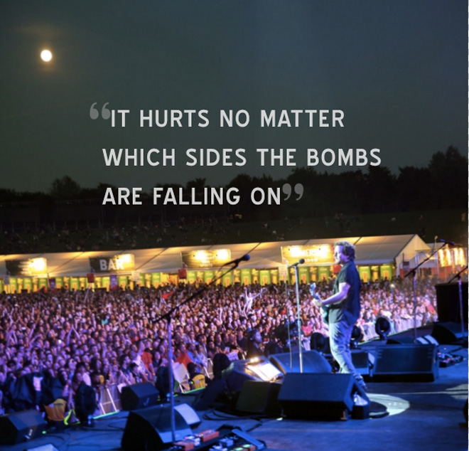 ヴェダーは具体的な名前は出さなかったが、イスラエルを批判したものと推測されている。この反戦メッセージには賛否両論が巻き起こったが、ヴェダーは水曜日(7月16日)、さらなる声明を発表し、ロック・コンサートで世界の平和を願うのを止めるつもりはないと宣言した。