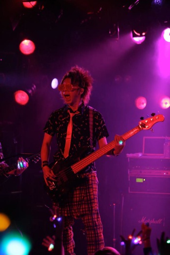 この日のライヴは、扇動的なエレクトロサウンドに合わせてオーディエンスが扇子を振り乱す「ダメ男」や、世の中にはびこる欺瞞をヘヴィかつアッパーなサウンドで暴く「現代病写」などの代表曲を披露。そのほか、「時給¥850」ではメンバー5人がアイドルグループ風に歌って踊れば、「♪ラララ♪」では観客の心へストレートに突き刺すバンドサウンドを届けるなど、多彩な楽曲群を連発する。会場のカメコ/カメオ(カメレオファンの呼称)達と共に、熱い空間を作り上げていった。