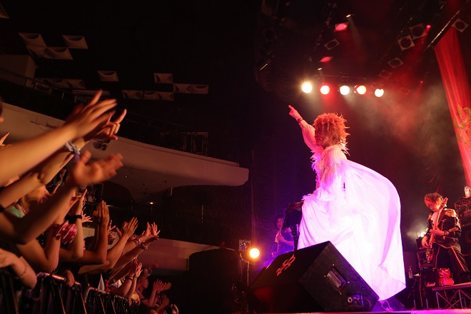 ここで衣装を黒から真っ白なものに着替え、「Symphony of The Vampire」より『第五楽章「Sonata」』、『第六楽章「満月のアダージョ」』、『第七楽章「Throne」』を熱演。本編ラストは「追憶のモナムール」で締めた。