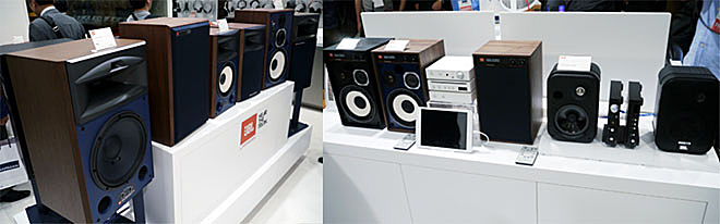 ▲モニタースピーカーも含め、JBLの多彩なスピーカーラインナップが展示される。