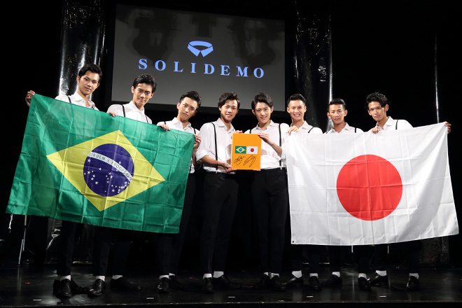 第一部として開催されたのは、SOLIDEMOが日本各地を旅した様子と、ブラジルで行なったライブについて報告する<ソリ旅! 遠征報告会>。会場では、まずメンバーが全国各地を旅しながら日本の伝統に触れる様子に密着した映像が、BSテレビ局・Dlife『ソリ旅!Road to BRAZIL~日本の誇りを学ぶ旅~』でオンエアされたものに未公開映像を加えて放映される。サブリーダーの向山が語った美白の秘密、母校を訪れた手島による後輩相手のエアサッカー……。