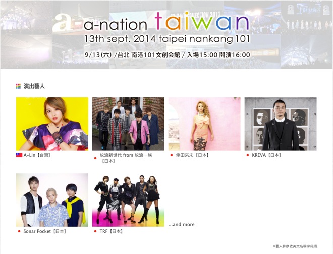 a-nation台湾公演にGENERATIONS from EXILE TRIBE、倖田來未、KREVA、ソナーポケット、TRFら