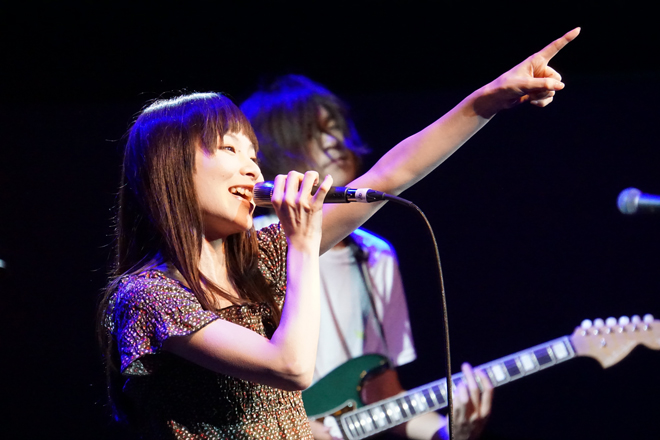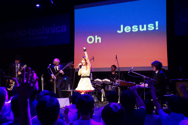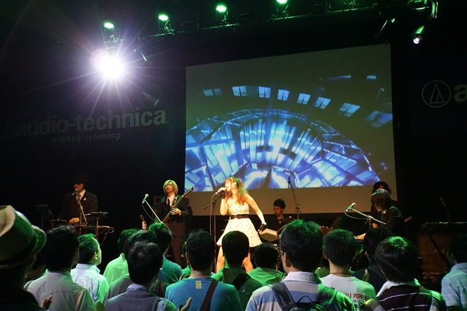 「TECHNOBOYS PULCRAFT GREEN-FUNDで一切ピッコピコしない曲を作ってくださった」という彼女のMCからもわかる通り、これまでも何度か共に楽曲制作をしてきた彼ら。コラボステージも3度目だけあり、結城のデビュー曲「Colorless Wind」で夏らしく爽快にトバしたあとは、結城・松井・石川が小気味よいフリと妖しいスキャットをユニゾンさせる「LOOP LOOP LOOP」でシュールな空間を創り出す等、息の合ったライブを展開してゆく。また、どの曲でも演奏中に楽曲のムードとリンクする映像が映し出されていたのも特筆すべき点。それが場内の空気を多彩に変容させてポイント高い。
