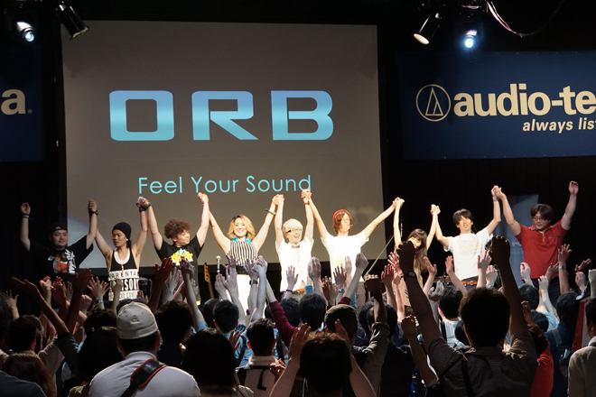 MCでは「ポタフェスのポタって何かな?」(towana)「ポータブル……?」(佐藤)というちょっとした小芝居から、本ステージの主催であるハイオーディオ機器メーカーORBとコラボしたポータブルヘッドフォンアンプのリリースを告知。「メチャメチャ音いいんですよ」とkevinが、さらに「iPhoneを繋いだら、音がよくなって返ってくる!」とyuxukiが絶賛し、その後は立て続けにシングル曲を披露してゆく。透明感の高いサウンドに清々しさがあふれる最新作「いつかの、いくつかのきみとのせかい」(TVアニメは「僕らはみんな河合荘」のオープニングテーマ)、kevinのグロッケンがキラキラと煌めくデビュー曲「ケセラセラ」(TVアニメは「有頂天家族」のエンディングテーマ)が続くと、徐々に会場が熱気に包まれていくと。実は、、これまで発表してきた4枚のシングル全てがでTVアニメとのタイアップを果たしている彼ら。その音は一つ一つが純で濁りなく、ファンタジックな世界を紡いで、なるほどアニメのテーマ曲にはうってつけだと納得させられる。