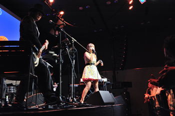 「TECHNOBOYS PULCRAFT GREEN-FUNDで一切ピッコピコしない曲を作ってくださった」という彼女のMCからもわかる通り、これまでも何度か共に楽曲制作をしてきた彼ら。コラボステージも3度目だけあり、結城のデビュー曲「Colorless Wind」で夏らしく爽快にトバしたあとは、結城・松井・石川が小気味よいフリと妖しいスキャットをユニゾンさせる「LOOP LOOP LOOP」でシュールな空間を創り出す等、息の合ったライブを展開してゆく。また、どの曲でも演奏中に楽曲のムードとリンクする映像が映し出されていたのも特筆すべき点。それが場内の空気を多彩に変容させてポイント高い。
