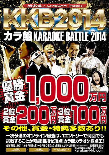 集え全国の精密採点DXマニア! 優勝賞金1,000万円! カラオケ館史上最大の「KKB2014カラ館KARAOKE BATTLE 2014」始動