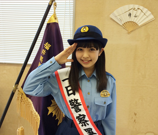 7月28日(月)福井県越前警察署で、GEMの武田舞彩(たけだ まあや)が一日警察署長に就任した。