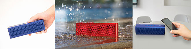 「MUVO mini」は、ワンタッチBluetooth ペアリングが可能なNFC機能や充電式の内蔵バッテリー、音声通話用のマイクなどを搭載したワイド幅19cmコンパクトサイズのBluetoothワイヤレススピーカー。IP66相当の防水・防塵性能を備え、浴室や洗面所、キッチンなどの水回り、水辺でのレジャーや雨の中などのアウドドアシーン、砂や埃が気になる屋外キャンプなどでも安心して使用できる。