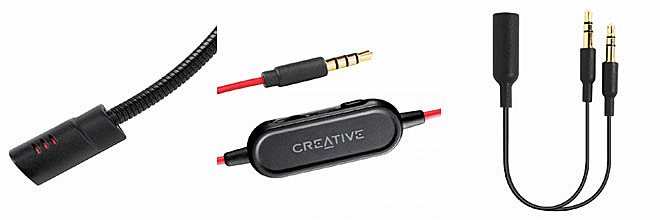 さらに4極端子を持たない一般的なオーディオ製品との接続も可能だ。ステレオ&マイクアナログ接続ケーブルが付属。これにより3.5mmタイプのステレオ接続およびマイクに対応した通常のパソコンやSound Blaster Zシリーズなどのサウンドカードなどとも接続できる。