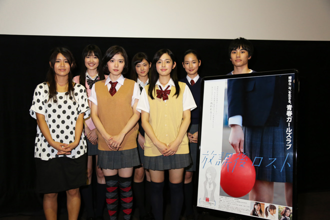映画『放課後ロスト』は、月刊誌ヤングエース(KADOKAWA)に連載中の五十嵐藍による青春オムニバスストーリー『ワールドゲイズ クリップス』を映画化した作品。この映画には“情熱的な恋や友情はうさんくさい”と日々を過ごす女子高生たちの微妙な心理が描かれた、3つの違うストーリーが収められているが、3つ共に、“廃校が決まった高校の学舎”が舞台となっており、すべて、今回舞台挨拶が実施された埼玉県の本庄市で撮影された。