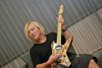 高崎:俺はキラー・ギターという自分のブランドを’80年代半ばに立ちあげて。それからは、もうずっとキラーのプライムを使ってる。あとは、たまにESPのランダムスターを使うこともあるね。プライムは、自分の好みやアイディアが沢山盛り込まれていて。たとえば、ネックがボディーに対して3度傾いた状態でセットされていたりとか。ボディー・トップの1弦側が少しだけ薄くなっているんだ。だから普通に持っただけでガットギターを弾いてるときみたいに、若干指板が下向きになる。指板はちょっと見にくくなるけど、そのほうが左手が楽な状態で弾けるから。こういうギターは、見たことないでしょう?
