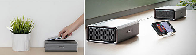 ▲NFC対応でスマートフォンとカンタンにペアリング。別売りのケーブルを使用して2台をつなげればよりワイド感やパワフル感が増す。