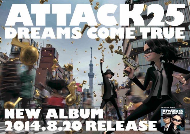 デビュー25周年を迎えたDREAMS COME TRUEの、3年9ヶ月ぶりとなるオリジナルアルバム『ATTACK25』。発売まで2週間を切った8月6日より、主要電鉄各社の車両に掲出されているドアステッカーや、主要駅での駅貼りポスター、アドトラックなど本作の交通広告が東京、大阪、名古屋、福岡で展開される。