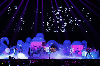 後半「BAD ROMANCE」の頃には、火照ったオーディエンス身体を冷ますかのように、ぱらぱらと大粒の雨が降りだしたが、それはまるでアリーナに舞う紙吹雪のように、天が仕込んだ水しぶきのような心地よさだった。