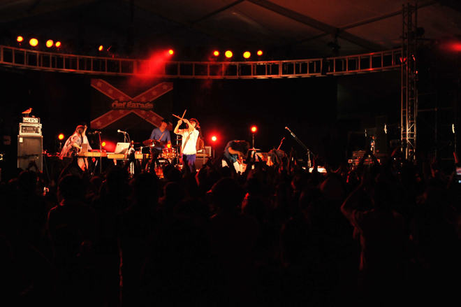 2013年初のSUN STAGEを圧巻のパフォーマンスで深夜の石狩をダンスホールに仕上げた男達が、2014年はENTRANCE DACEHALLと銘打ち入場口でのライブを決行。前日、前々日から並ぶ沢山の入場待ちの待機列に、スーツ姿に楽器を抱えて現れたメンバーは急ぎ足でステージに向かった。ステージの前はあっという間にオーディエスで溢れ、ステージ後方からも入場列から声援が飛ぶ変則的なステージにも拘らず、縦横無尽なパフォーマンスで、入場口は題名通り“ENTRANCE DANVEHALL”と化していた。