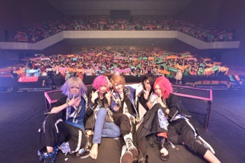 という広い会場ならではのMCを挟んで、ライヴは一層の勢いを増した。「Love_Duck_Core_Nothing」「FCW」「絶望クリエイター」といった烈しいナンバーが次々に繰り出されると、会場にはヘッドバンキングが吹き荒れ、あちこちに拳が突き上がる。
