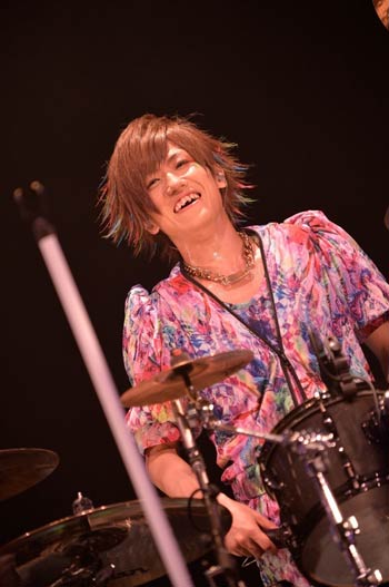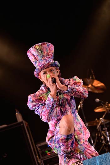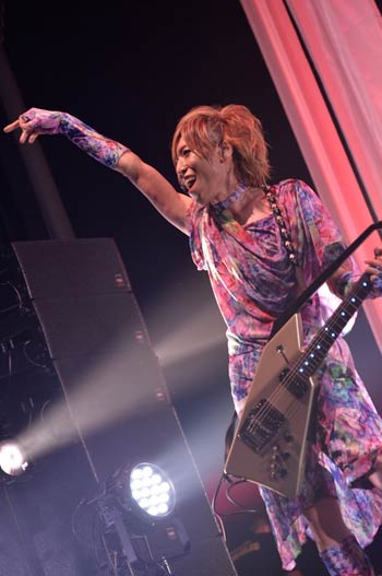 またライヴ中盤では、テレビ朝日系全国放送「Break Out」にて決定した人気お笑いコンビ“よゐこ”の濱口 優(の友人)が率いる世界初のヴィジュアル系×ブサイク=ブジュアル系バンド・禿夢とのコラボステージも行なわれた。斜幕に振付解説映像が流された後、カメレオと共にステージに現れた禿夢の6人は、40代男性の頭頂部における悲哀(要するに加齢で髪の毛が薄くなっていくということ)を歌った「リアルフォーティー」を披露。そしてそのままカメレオの「関係ナイ」へなだれ込んでいく。計11人が仲睦まじく、激しく(禿げしく?)騒ぎまくる熱演に、オーディエンス達も楽しそうに一緒に踊り回っていた。