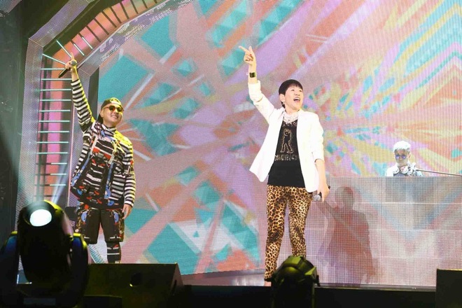 そして、続けざまに2005年の第56回紅白歌合戦出場以来となるm-flo loves Akiko Wada「HEY!」を披露。約9年ぶりとなる超レア曲の披露でオーディエンスも大興奮。和田アキ子も「最高の想い出を作るぞー!!」とオーディエンスを煽り、アグレッシヴなステージを展開し会場を盛り上げた。