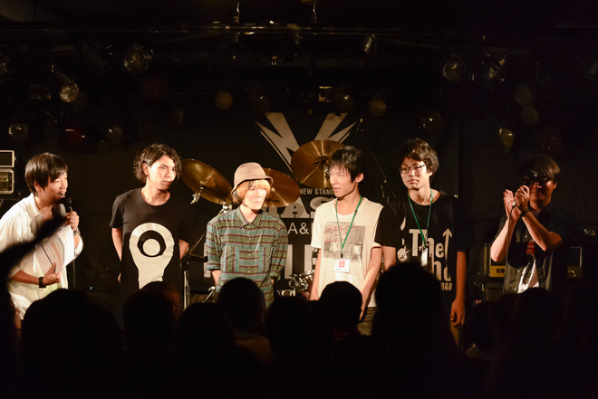 東京公演のトリでステージに登場したのは、大阪公演同様、THE ORAL CIGARETTESだった。7月にメジャーデビューを果たした彼らは、すでにその名を全国区に轟かせている。この日も堂々たるパフォーマンスでいっきに観客を惹きつけたのだが、その吸引力は凄まじいものだった。4人と観客の勢い増すばかりの応戦で、会場の熱気が上昇しっぱなし。そんななか、全身全霊のステージを見せた彼らは、MCで、「今日は新しい仲間が増える大事な日です。MASH A&Rこれからもっとデカくなっていきますから。僕たちが頑張ります、引っ張っていきますから!」と、東京公演でもまた、初代覇者らしい頼もしい言葉を残した。最後に披露した「N.I.R.A」では、MASH A&Rというプロジェクトの成功を確信させるようなステージを見せ、ライブを締めくくった。