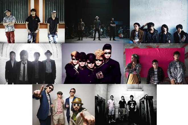 ▲写真上左から右下:10-FEET、ACIDMAN、[Alexandros]、エレファントカシマシ、氣志團、サンボマスター、FIRE BALL、locofrank。