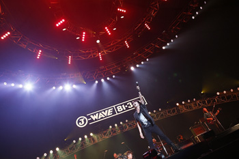 1日目のラストは平井 堅とともに15回連続出場のスガ シカオ。歌いだしは毎年恒例となった会場とともに大合唱する「Eighty-one point three, J-WAVE」のジングル。「今日は11月に“スガ シカオいいとこてんこ盛り”ライブをするんだけど、その圧縮版のライブだからいろんな曲をやります」という言葉どおり、バラードからロック、ファンクミュージックまでスガ シカオの多様な音楽性をこれでもかと見せつけるパフォーマンスに会場も大盛り上がりに。アンコールには、サプライズで15回連続出場同志の平井 堅が登場「夜空ノムコウ」を共演するというプレゼントつき。さらには「これで終わったら暗いやつと思われそうだから」とフィナーレは「午後のパレード」でしめくくり。J-WAVE LIVE ならではの大満足のステージで、1日目は感動と興奮のうちに終了した。