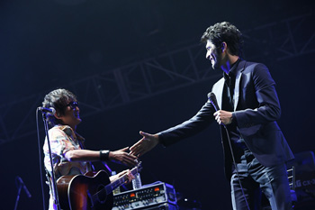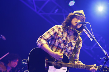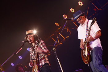 休憩をはさんで、意外にも今回がJ-WAVE LIVE 初出演となる斉藤和義が登場。いきなりのキラーチューン「やさしくなりたい」でスタート。手をふりながら「ちーっす」と語り掛ける抜け感のあるMCと対照的な、ハードなロックンロールで観客を釘づけにしていく。「月光」「ハローグッバイ」など6曲が終わったところで「最高に人生をなめてる男」と奥田民生を呼び込み、奥田の「恋のかけら」、斉藤の「ずっと好きだった」を共演。ステージの盛り上がりは最高潮に。ラストは「歩いて帰ろう」で観客も大合唱の圧巻のステージとなった。