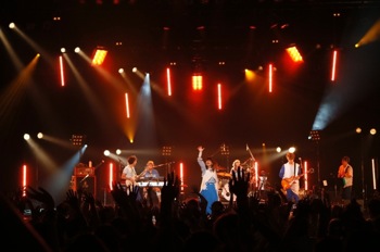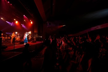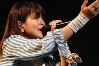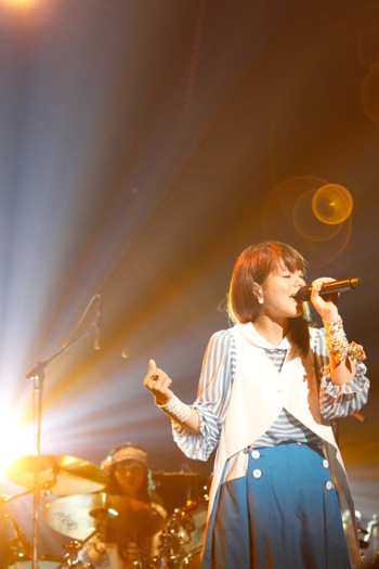 冒頭の数曲は、10周年記念ということもありライブの人気曲をセレクトしたが、ロック・チューン「Please Please」からは、リリースされたばかりのニューアルバム『STARTLINE』から選出。「今日は皆が着てきた服を汗でびしょびしょにするから、よろしく!」と、ここでNANAEが煽りつつ、リズムに合わせて陽気に赤い星形のタンバリンを叩くと、観客もそれに合わせて体を大きく揺らしたり、ジャンプして、ライブを体全体で楽しんでいた。