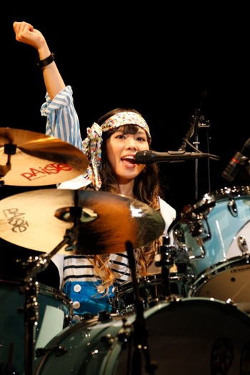七色のライトが煌めく中、「渋谷、行くよ!」のかけ声とともに疾走感あふれるナンバー「虹色」へ。腰でリズムを取って体いっぱいにグルーヴを感じながら、それを余すことなく指先へと伝えるかのようなKEITAのベースラインが印象的だ。「ラヴァーズ」ではMAIKOの叩き出すタイトなリズムに乗せ、NANAEがかけ声で煽ると、オーディエンスもそれに負けじと両手を高く掲げて応じていた。