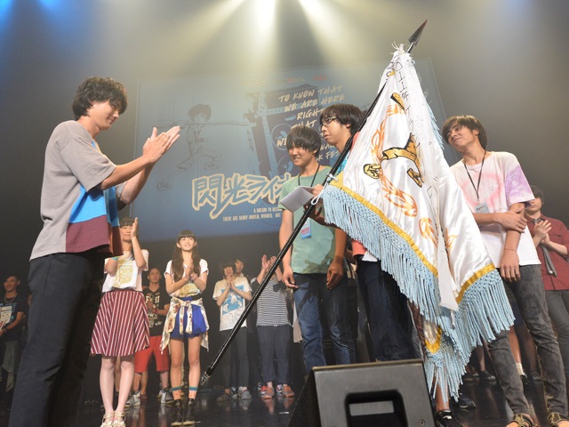 オープニングアクトとして昨年のグランプリ受賞者フィッシュライフが登場して「沈黙のsummer」「フライングレッド」「ヒーローが死んだ夜」の3曲を披露。その後ゲストライブには、閃光ライオットに応募した10代の多くが“影響を受けた好きなバンド”として名前を挙げたガールズバンドSCANDALが登場。「会わないつもりの、元気でね」「DOLL」「太陽スキャンダラス」「Your song」「夜明けの流星群」の全5曲を披露して会場を一体にした。