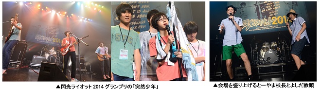 10代アーティスト限定の音楽の甲子園<閃光ライオット2014>が8月31日(日)に新木場STUDIO COASTで開催され、東京都出身の「突然少年」がグランプリに輝いた。また、今回新たに創設された「ダンスステージ」では宮崎県出身の「Yoshiki」がグランプリに輝いた。
